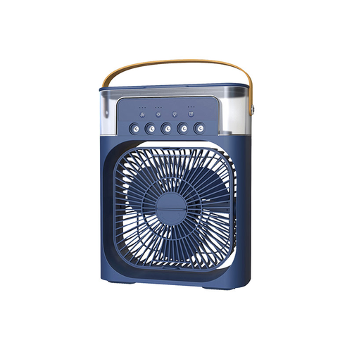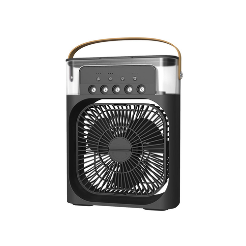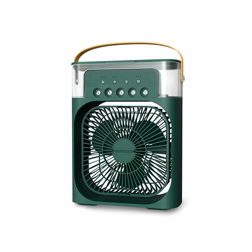 پنکه مه پاش رومیزی مدل Air Cooler Fan فاقد باتری است و به صورت مستقیم توسط آداپتور و کابل USB Type C به برق متصل میشود. دارای پنج نازل مه پاش قوی و قابلیت تنظیم تعداد مه پاش ها است. دارای پد خوشبو کننده و تایمر جهت خاموشی خودکار می باشد. فن دستگاه قابلیت تنظیم دستی و چرخش 360 درجه در یک جهت را دارد و محافظ فن دارای قابلیت باز و بسته شدن جهت نظافت پره ها میباشد. ترجیحا از آب تصفیه شده درون دستگاه استفاده شود جهت جلوگیری از رسوب.